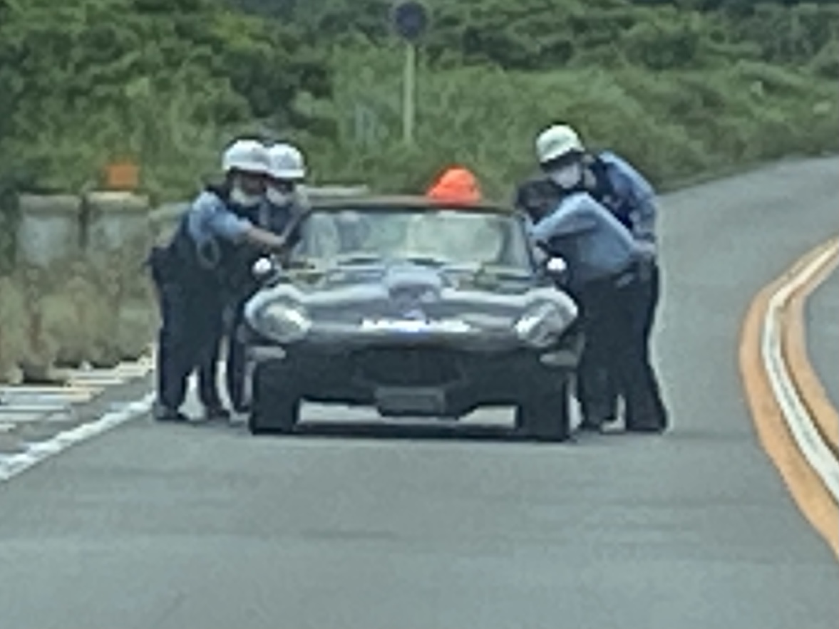 すると警察官👮♂️が近付いて来られ道路脇に立ち、前の車を行かせると、こちらには通行止めを命じられるではありませんか〜😅。